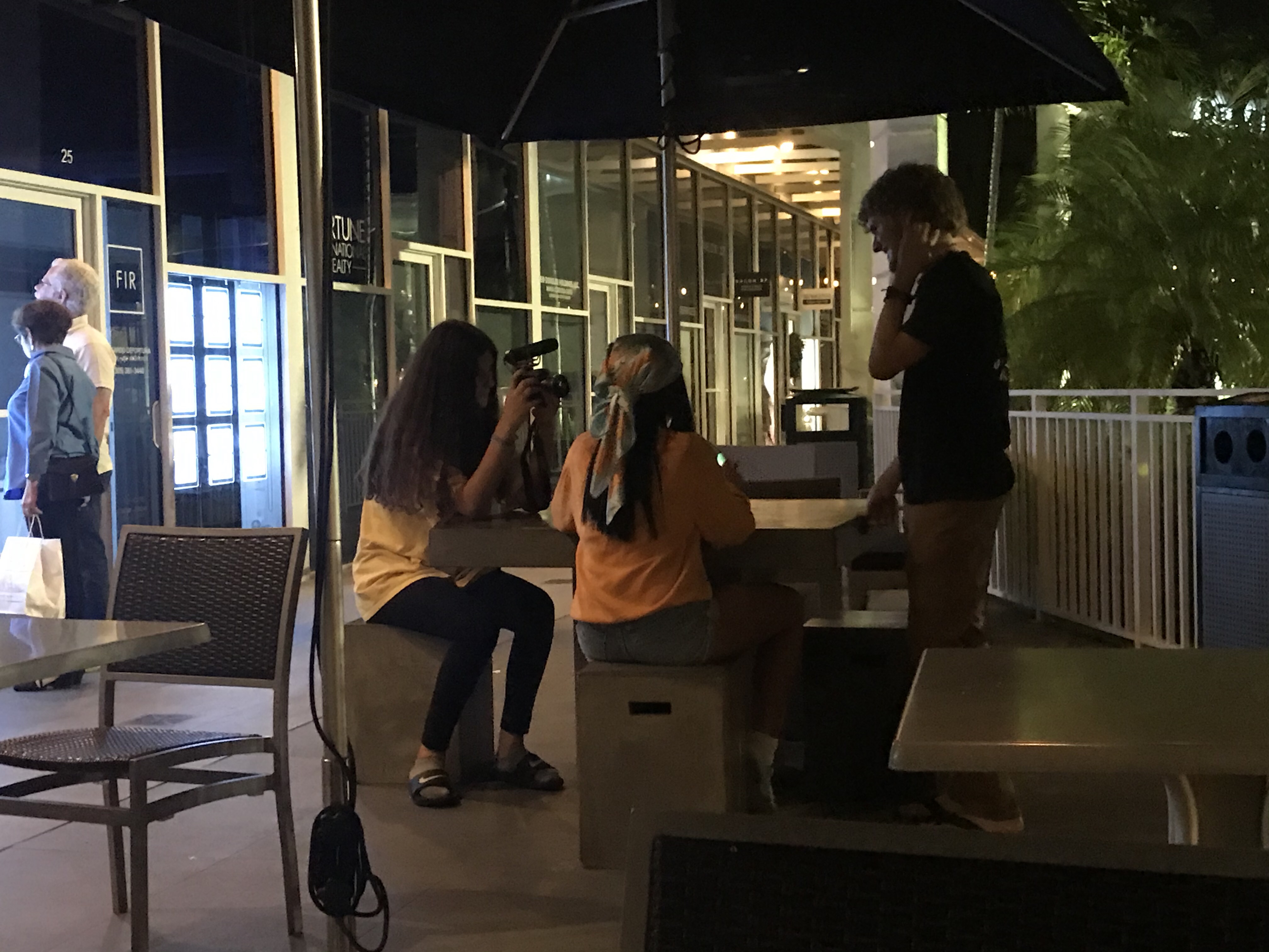 To have a basic understanding of what we wanted to make, we had three people to show a love triangle but not a typical one. Two characters were already together, but they are together. They are planning on who their next “victim” would be. The suspicious couple was purposefully in dark colors, making them seem as if what they were planning to do was ‘dark’. The “victim” is wearing colors just to show a contrast and difference since she is unaware anything suspicious is even occurring. We chose the time of day to be dark, considering we wanted the scenery to seem as if something bad was going to happen. From there, I considered how the lighting might show up on the camera and how I still wanted the audience to know it was a dark evening. Then, I remembered there was a restaurant with outdoor seating. Conveniently, there was good enough lighting at the seating area to where you could see what was occurring but you could also tell it was night time. This is where the shot list came in handy. I was able to go-off the ideas we had placed for shots that would capture the hidden meanings, the point of view of the character who is being mischievous, and angles that showed all the important features that were put in place with a purpose. When it comes to the audios that we had, there was some difficulties. The microphone I had used to attempt to catch all the conversation, was not the best for some reason. It had a certain sound I was hearing when I was editing, that I could not hear when we were recording. As I continued to edit, it didn’t seem to be so present as I seemed to have edited it out. In terms of non-diegetic sounds, I did add some in the beginning and end to give it more of a suspenseful feel to it. Other than that, the dialogue was the center of attention in this film opening. When it came to naming the film, I thought that “Her” would be perfect since that was the main idea. Considering there was no studio production and lighting or Hollywood acting, I believe we did a decent job portraying the idea we wanted to get across.
